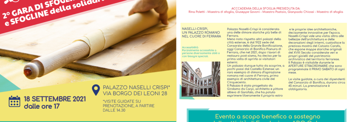 La seconda edizione del duello all’ultima sfoglia si terrà sabato 18 settembre dalle ore 17 a palazzo Naselli Crispi, in via Borgo dei Leoni 28, nel cuore di Ferrara